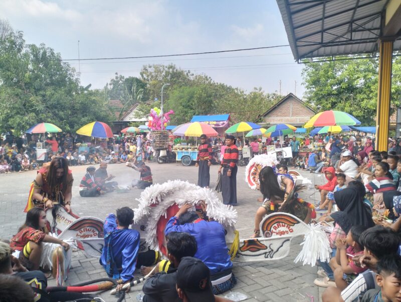 Desa Genenganjasem, menyelenggarakan sedekah desa dengan menghadirkan pagelaran Kuda lumping, bertempat di halaman Kantor Desa Genengan Jasem, Kecamatan Kabuh, Kabupaten Jombang, pada Senin 10/07/2023.