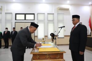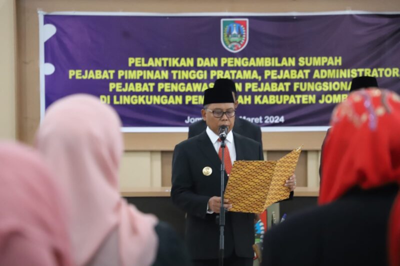 Jombang, Borneoterkini – Pada 13 Maret 2024, Pj Bupati Jombang, Sugiat S.Sos, M.Psi.T, melantik 25 pejabat di Badan Pendapatan Daerah (Bapenda) Kabupaten Jombang. Pelantikan ini bertujuan untuk meningkatkan pelayanan kepada masyarakat. Para pejabat yang dilantik berasal dari berbagai bidang, termasuk administrasi, pemeriksaan, pendataan, dan pelayanan. Acara pelantikan berlangsung di ruang rapat Swagata, Pendopo Kabupaten Jombang.