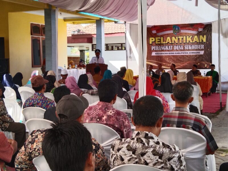 JOMBANG – Pelantikan perangkat desa di Desa Sukoiber, Kecamatan Gudo, Kabupaten Jombang berlangsung khidmat pada Jumat (11/8/2023). Acara digelar di Balai Desa Sukoiber dengan dihadiri Camat Gudo Arif Hidayat, Kepala Desa Isnadi, perangkat desa, dan OPD setempat.