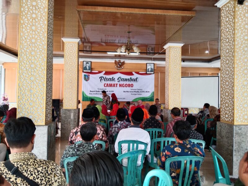 Ngoro, Jombang- Kecamatan Ngoro menggelar acara Pisah Sambut Camat yang berlangsung dengan meriah di kantor kecamatan pada hari Kamis, 14 September 2023. Acara ini menjadi momentum penting bagi warga Ngoro untuk mengucapkan selamat tinggal kepada Bapak Endro Wahyudi, Camat Ngoro yang lama, dan menyambut dengan hangat Ibu Nur Evva Maylia sebagai Camat Ngoro yang baru.