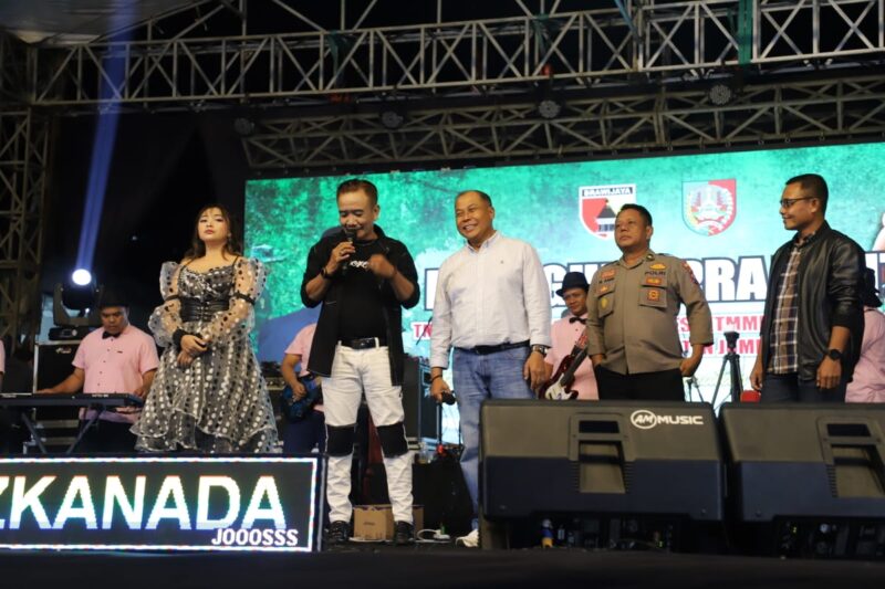 Pj Bupati Sugiat didampingi Pj Ketua Tim Penggerak PKK Kabupaten Jombang, Yayuk Dwi Irawanti Sugiat, S.Pd. Acara sosialisasi yang semarak dengan hiburan orkes dangdut ini bertujuan mengedukasi masyarakat tentang peredaran rokok ilegal yang merugikan negara.